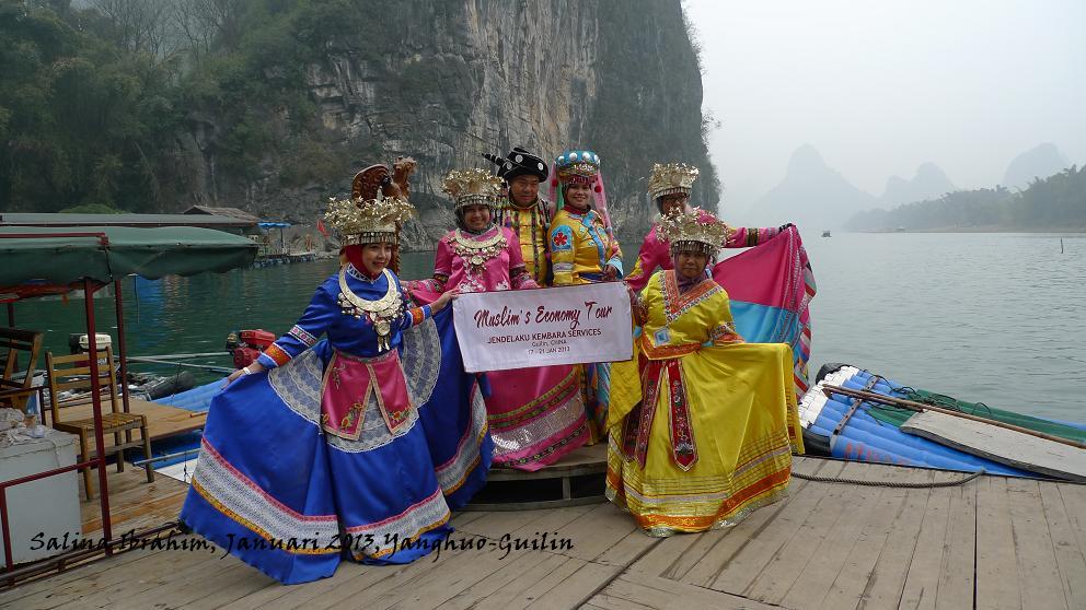 KOSTUM WARNA-WARNI TEPI SUNGAI LIBercuti di Guilin, China, terasa tidak lengkap sekiranya tidak ke Yangshuo, kira-kira sejam perjalanan menaiki bas untuk sampai ke sana dari Guilin. Berkunjung ke sana dalam musim sejuk juga memberi pengalaman berbeza. Ada orang lebih suka membeli-belah sekiranya bercuti, ada pula yang mahukan aktiviti lawatan bagi mengenali suasana rakyat tempatan. Ada juga yang mahukan aktiviti lasak. Ada yang mahukan kedua-duanya atau ketiga-tiganya sekali. Tidak kurang yang sekadar mahu menenangkan fikiran, berehat di bilik sambil menonton televisyen dan melayari Internet. Masing-masing ada kecenderungan dan pilihan sendiri.